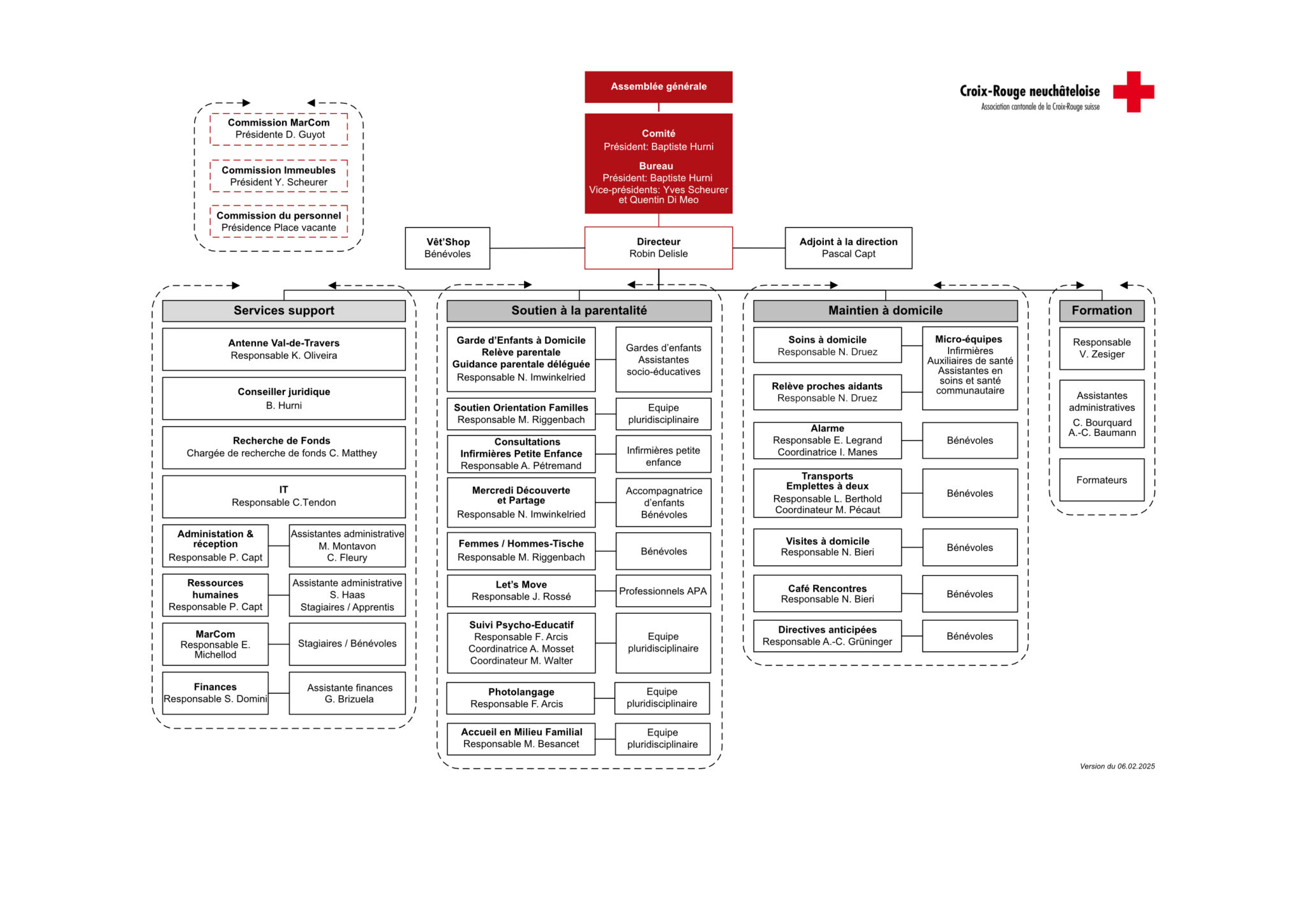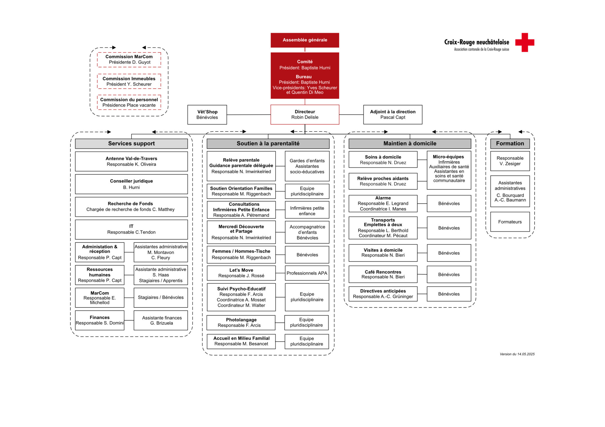 Fondée en 1890, la Croix-Rouge neuchâteloise fait partie des 24 associations cantonales membres de la Croix-Rouge suisse. Nous avons trois sites ; un à La Chaux-de-Fonds où nous avons notre siège, un autre à Neuchâtel et un dernier à Fleurier dans le Val-de-Travers.